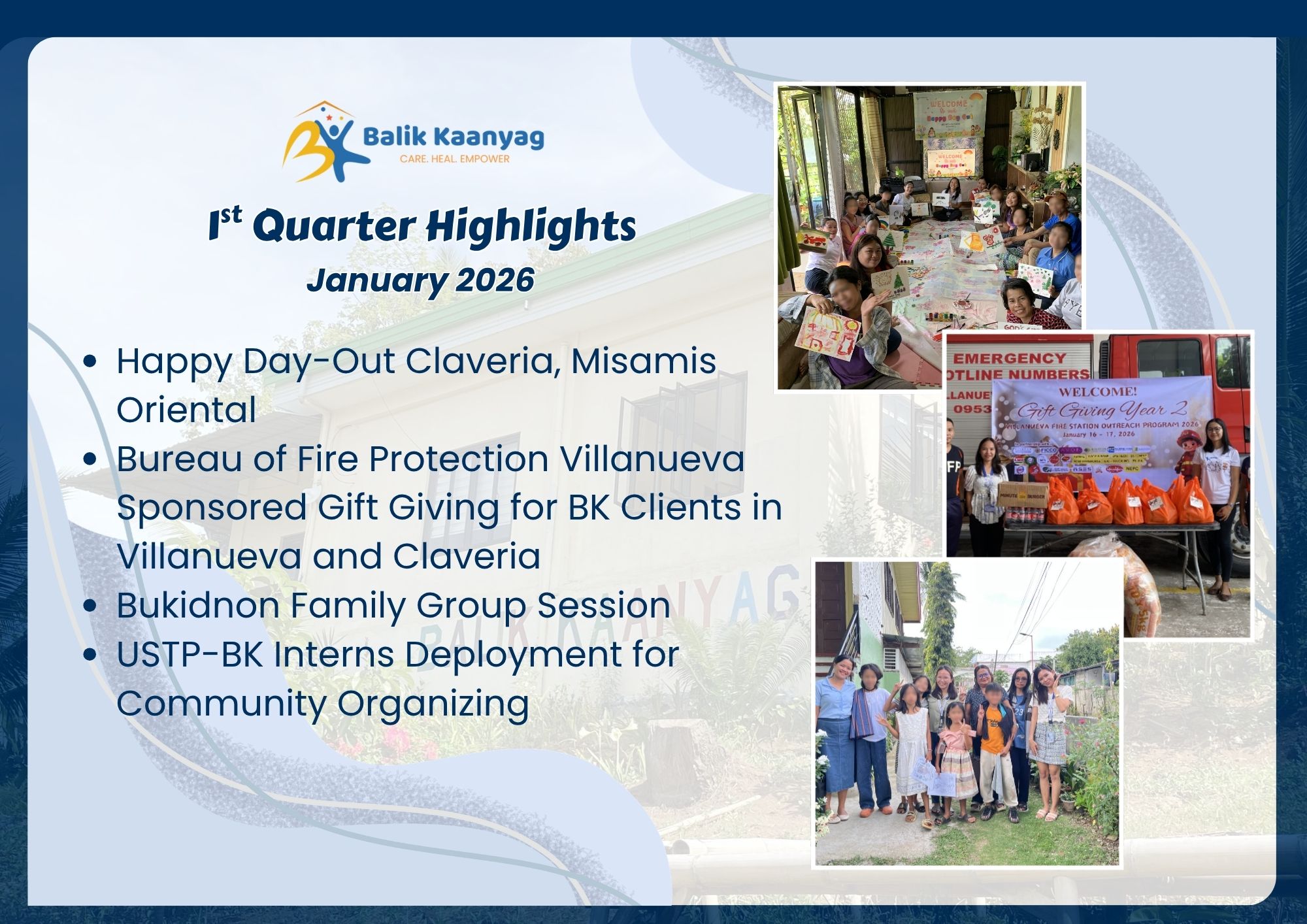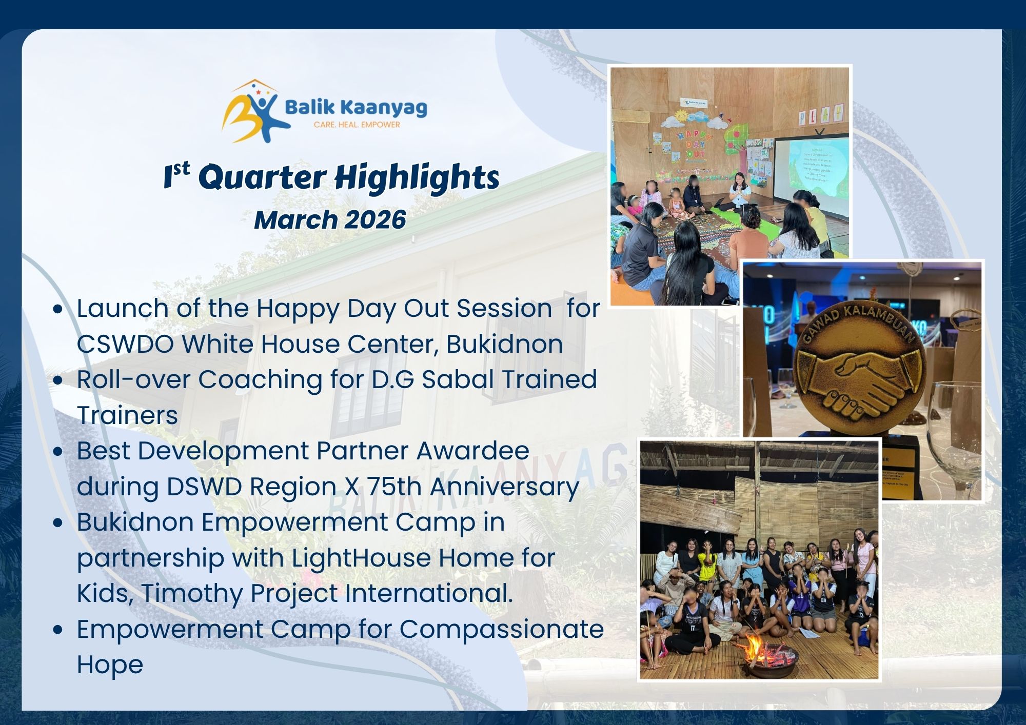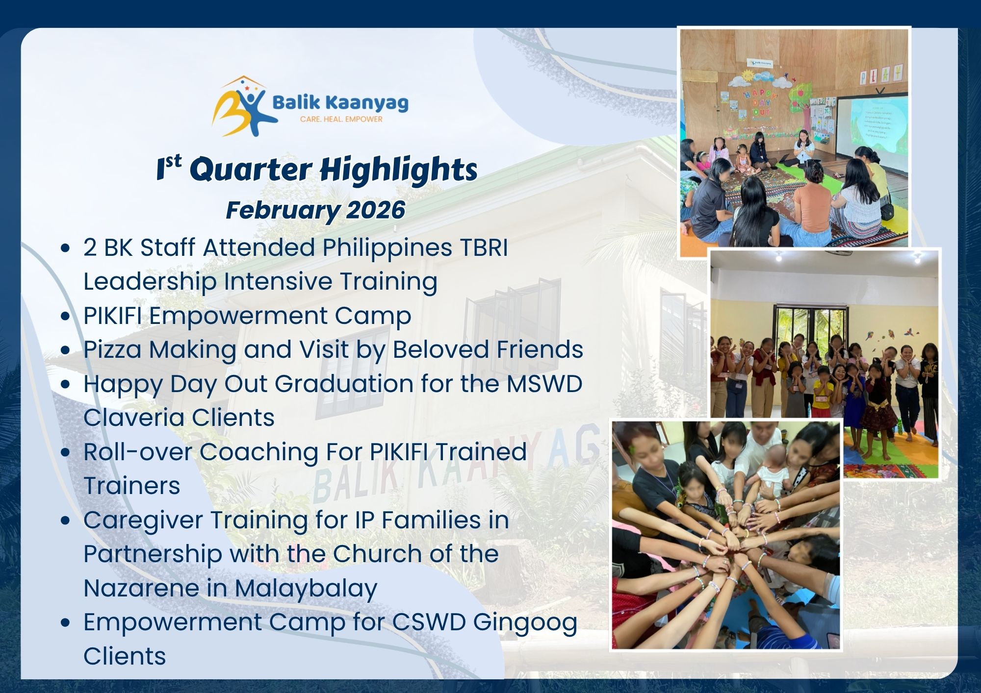 We inaugurated the Balik Kaanyag Child and Family Center in October 2023. It has been more than two years! We are in awe and gratitude, as we see our vision become reality, one step at a time. We have touched the lives of hundreds of children, students, caregivers, community leaders and organizations. Here are some highlights. To protect the privacy of victims/ survivors of abuse, we blur their faces in the photos.